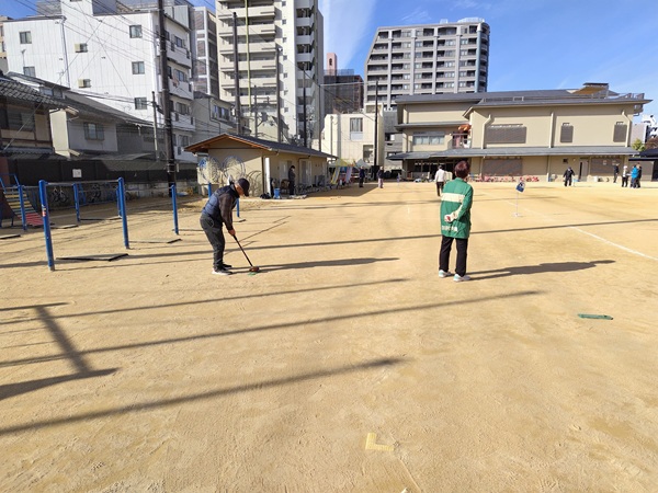 体育振興会令和7年11月23日(日)に「秋のグラウンドゴルフ大会」が、下京雅小学校グラウンドで行われました。当日は17名の方にご参加頂き、雲一つない秋晴れの空の下、腕を競い合っていただきました。今回は、下京雅小学校グラウンドでの初めてのグラウンドゴルフ大会でした、。また、今回は町内対抗ではなく個人対抗としました。